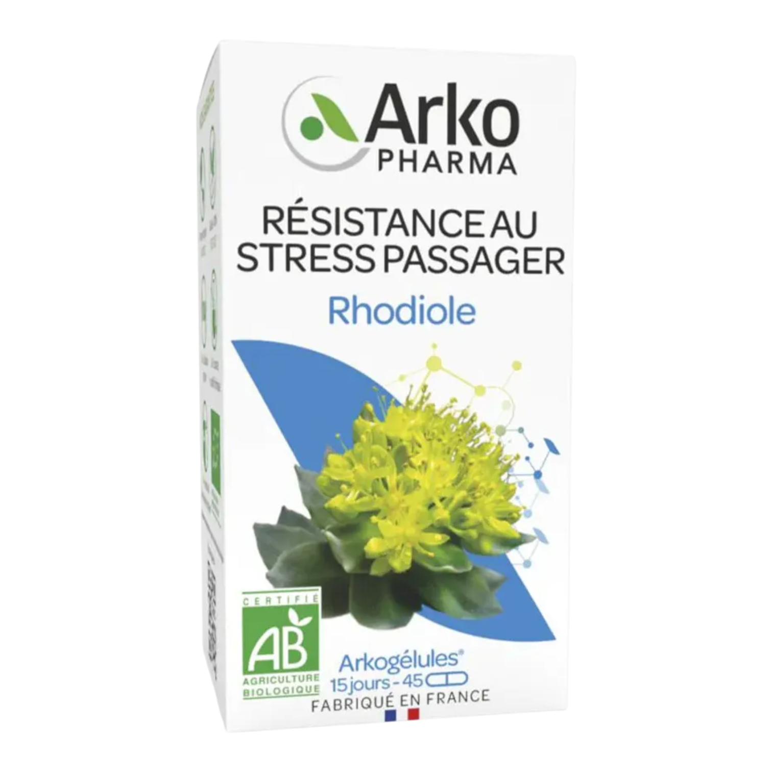 Découvrez Arkogelules Rhodiole d’Arkopharma, complément alimentaire naturel à base de rhodiole pour lutter contre le stress et la fatigue. 45 gélules pour un bien-être optimal.