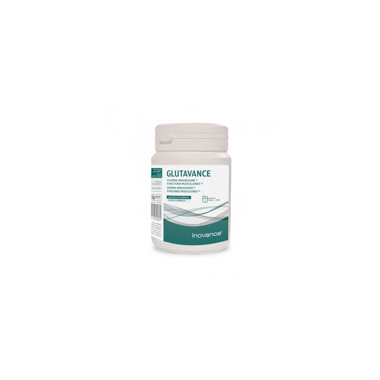 Complément alimentaire à base de glutamine, zinc et vitamine D.• J’ai des intolérances alimentaires.• Je multiplie les entrainements sportifs et je m’épuise.La glutamine est un acide aminé qui apporte de l’azote et de l’énergie essentielle pour les cellules de la paroi intestinale. Il est abondant dans les muscles et sert entre autres à la fabrication de la glucosamine, support des cartilages et des tendons. GLUTAVANCE associe de la glutamine à du zinc, qui contribue à une synthèse protéique normale et au fonctionnement du système immunitaire. La vitamine D, également présente, contribue au maintien des fonctions musculaires et soutient le système immunitaire.