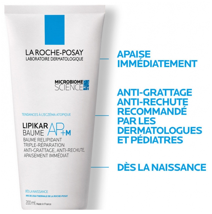 Découvrez La Roche-Posay Lipikar AP+M Baume, une solution apaisante pour les peaux sèches à tendance atopique. Format eco-responsable de 200ml.